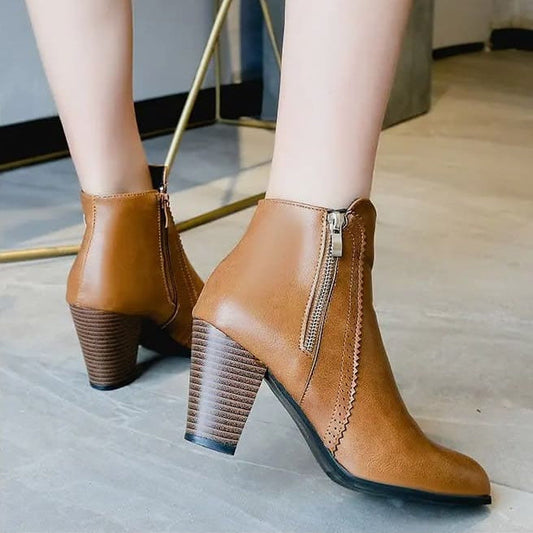 Ou 12x de R$ 42,89BOTA FEMININA DONNA MISS FRANCINI MARROM – CANO CURTO COM SALTO BLOCO E ZÍPER LATERAL